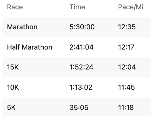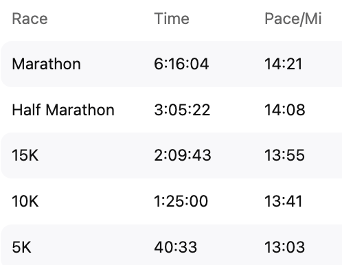 My current 10k pace is 13:30.