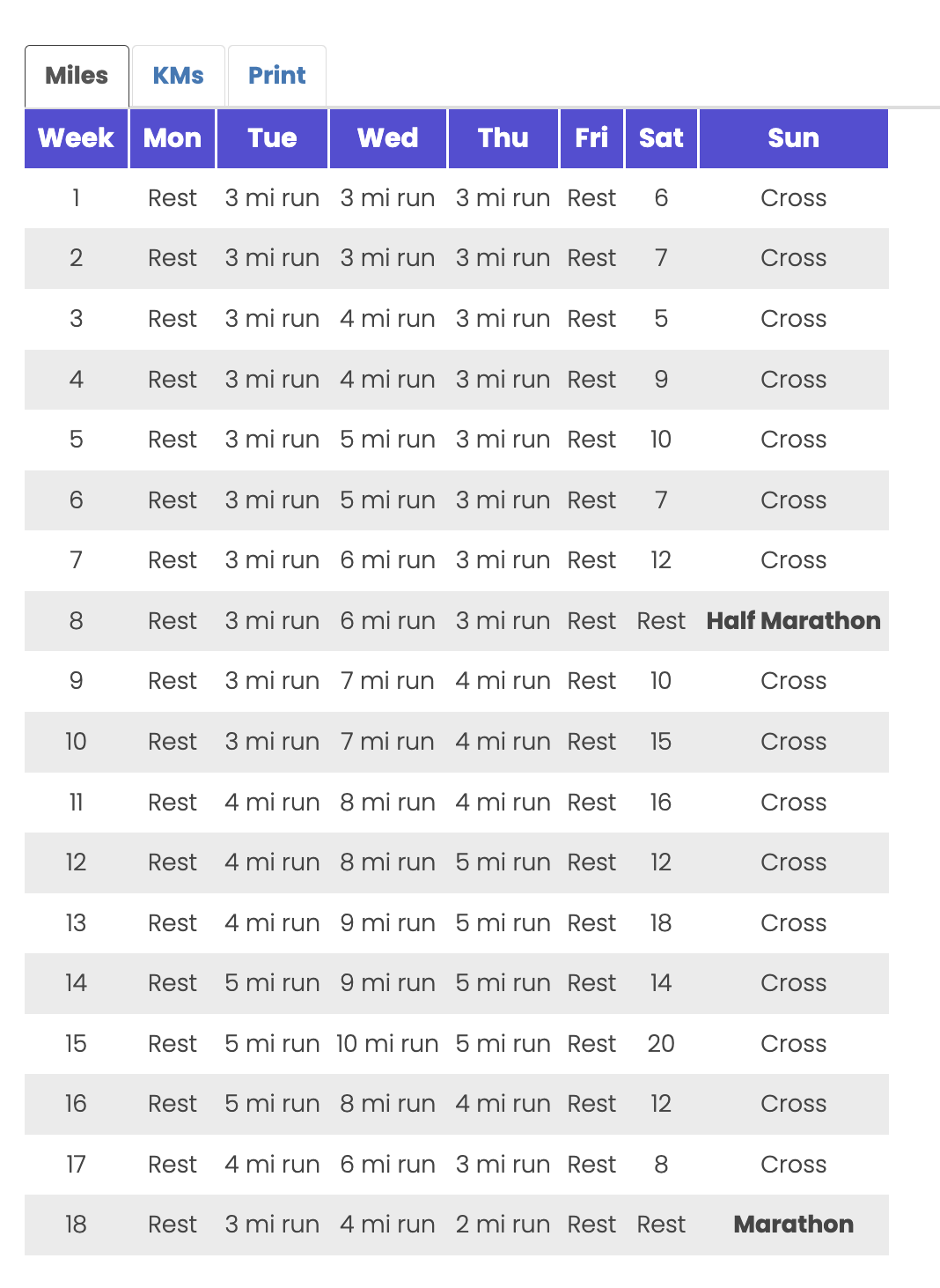 - 40 to 55 miles a week