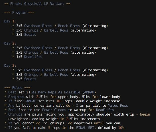 | Monday | Strength (Upper body) Bench Shoulders Barbell |