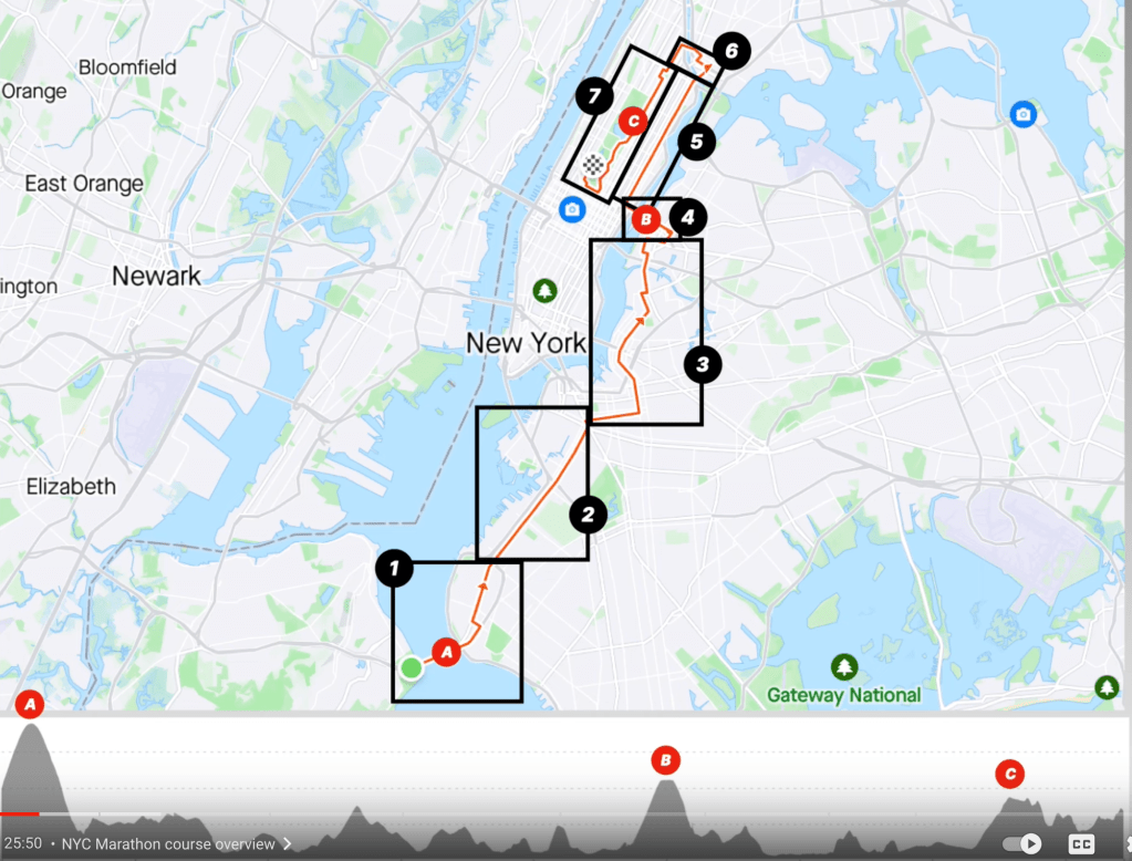 | 16, 17, 18 | First Avenue Long straight to Bronx. THIS WILL BE BRUTAL. You need to MENTALLY CHECK OUT <<< YOU ARE NOT HERE ANYMORE >>> <<< YOUR BODY IS JUST A VESSEL >>> <<< GET TO THE LAST 10 K >>> | |