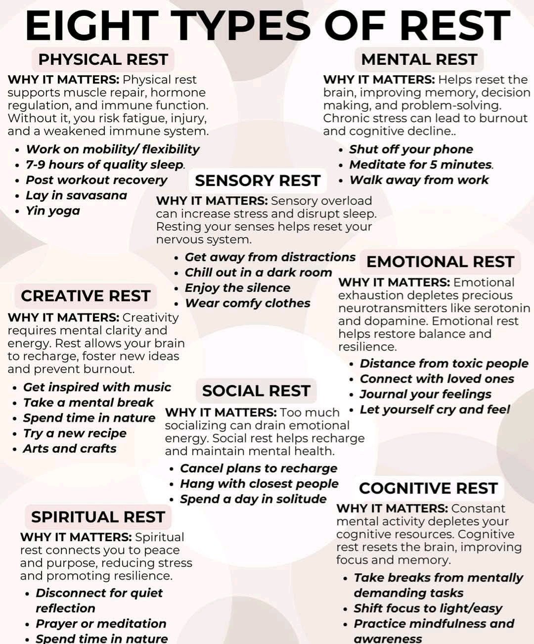 Why it matters: Fosters mental clarity, energy, and creativity. Prevents burnout and supports new ideas.