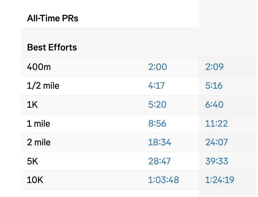 Good deltas to achieve. Basically, this is saying that I can run a 10k with minimal stopping.
