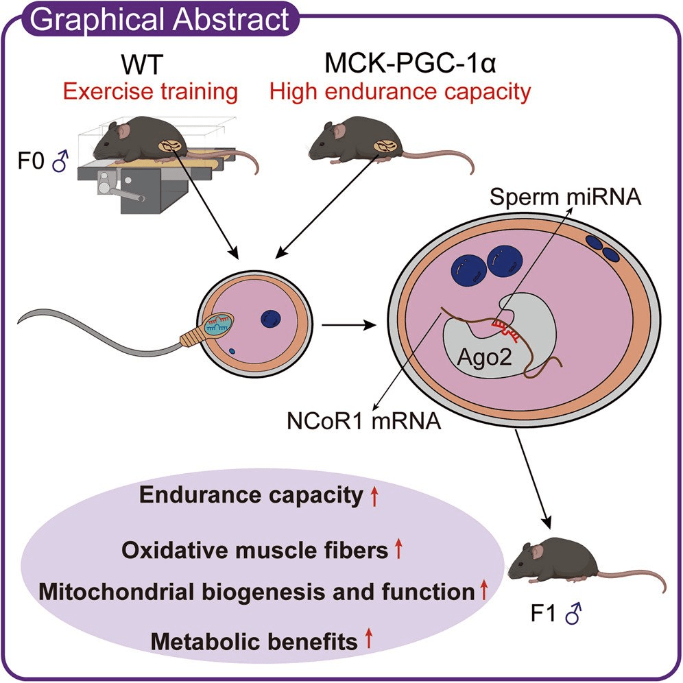 Effects tracked to sperm small RNAs that suppressed a “molecular brake” on PGC-1α, the classic mitochondrial biogenesis switch.